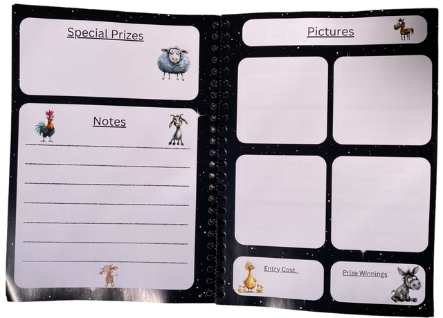 This is a showing journal I created as I like to treasure the memory’s me,my friends and my flock have made over the years. It’s contains enough space for 10 shows in a year.